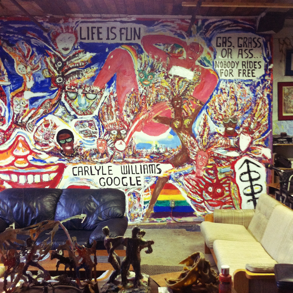 This mural is painted inside Carlyle Williams’ loft. Photograph by Marc Rimmer: http://marcrimmer.tumblr.com/post/13363841232